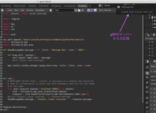 こんばんは、子供達がなぜかプレデターブームです。紙とセロハンテープで多数のプレデターを作っています。@kjunichiです。 背景 blenderのpythonにちょっかい出して遊んでいる。 gRPCがpythonでも動くことを知ったので、blender + gRPCをやってみることに。…